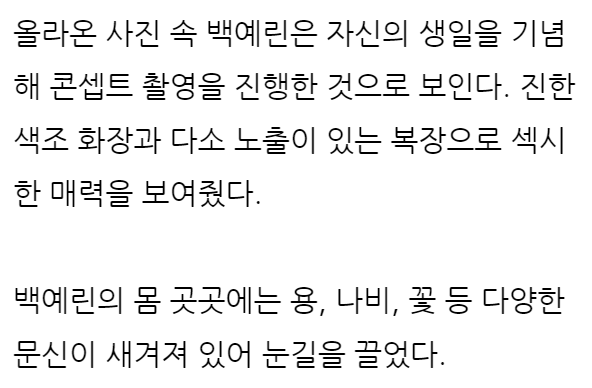 작성자 A씨는 “생일기념 온몸 타투 싹 다 공개한 백예린” 라는 제목의 글로 많은 네티즌들의 시선을 사로잡았다.