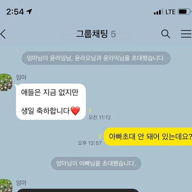 윤종신의 생일을 가족 대화방에서 축하한 것이었다.
