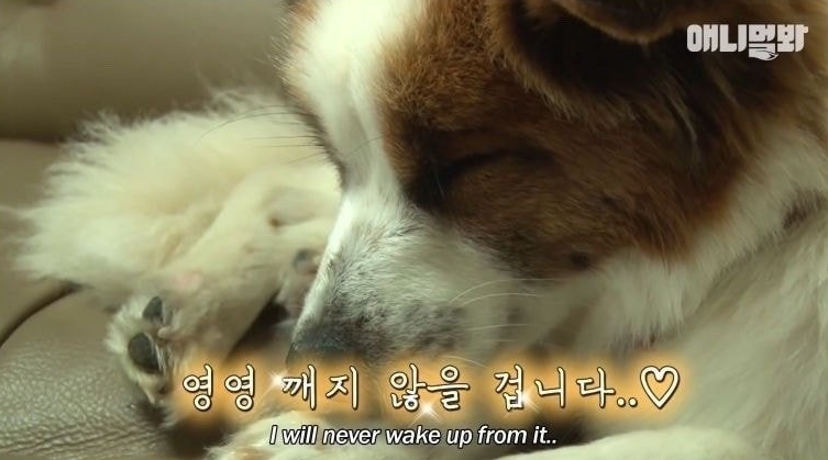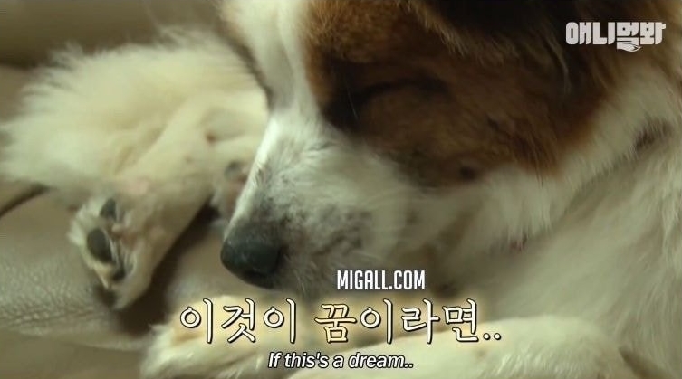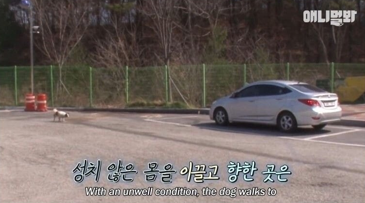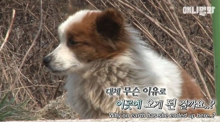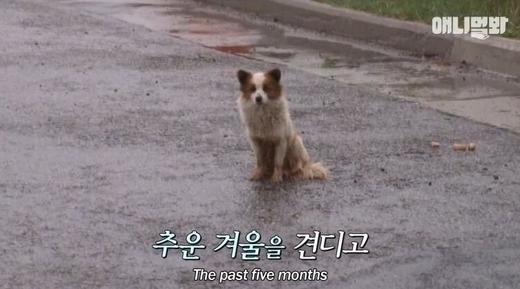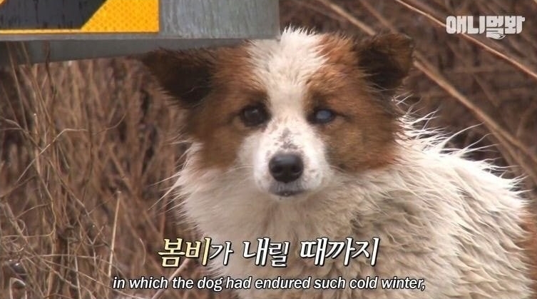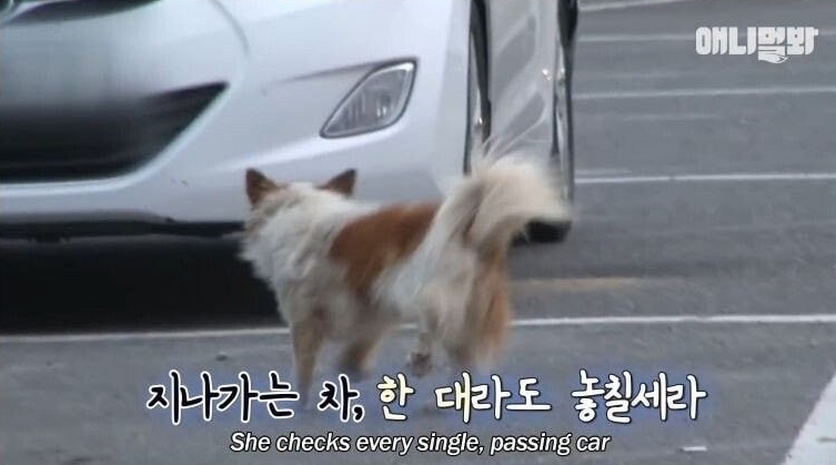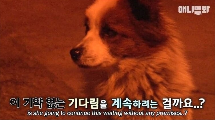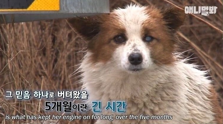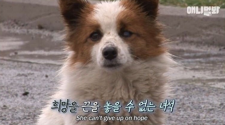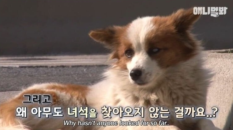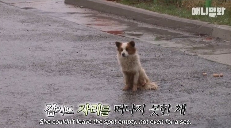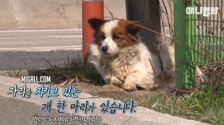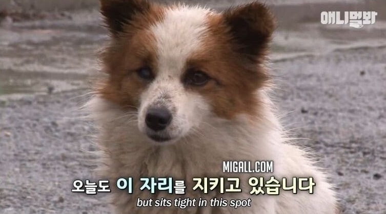 본문 캡처되어 있는 사진에는 “자리를 지키고 있는 개 한마리가 있습니다.” 라고 전했다.