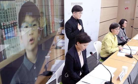 이날 어린이 기자단은 코로나 19 사회적 거리두기로 인해 비디오로 질문을 하고 정은경 본부장이 대답을 하는 식으로 진행했다.