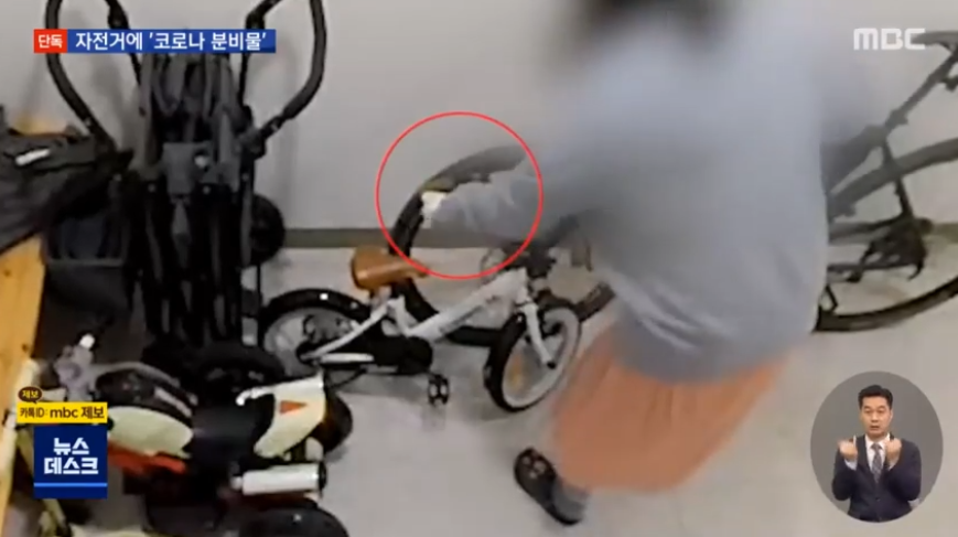 자전거에 무언가를 묻히고 있는 이 여성은 코로나 바이러스를 이웃 주민에게 퍼트리기 위해 이와 같은 행동을 했고, 경찰에 붙잡혔다.