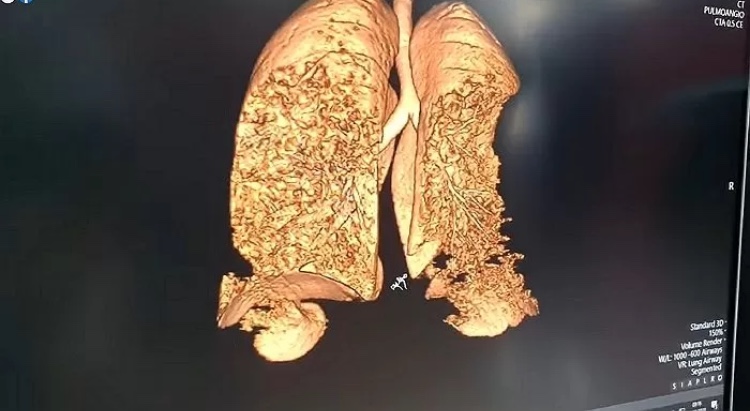그 영상에 나오는 환자의 폐는 꽤 많은 부분이 사라진 상태로 마치 쥐가 갉아 먹은 듯 일부만 남아있었다.