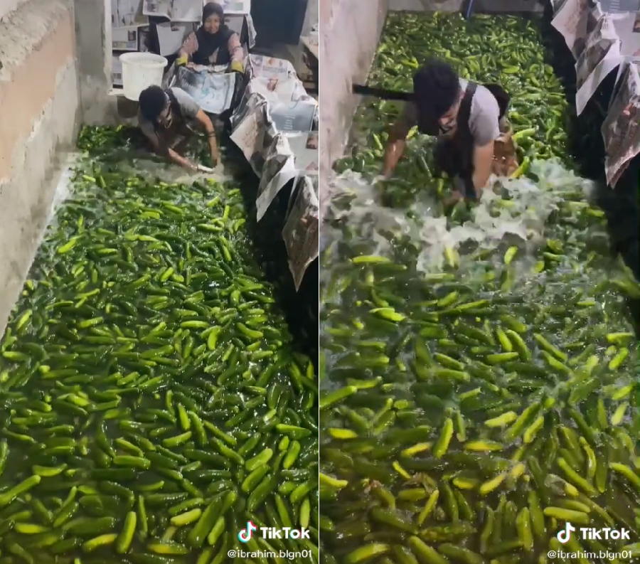 지난 21일 한 틱톡 계정에는 해외의 피클 공장에서 오이를 세척하고 있는 남성을 찍은 영상이 올라왔다.