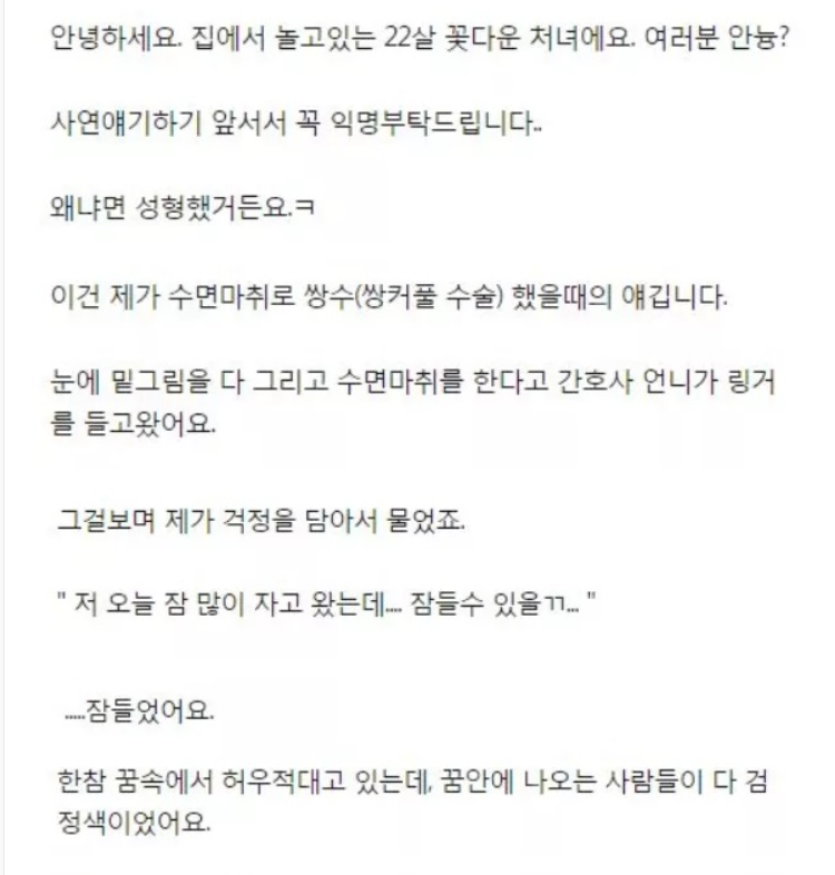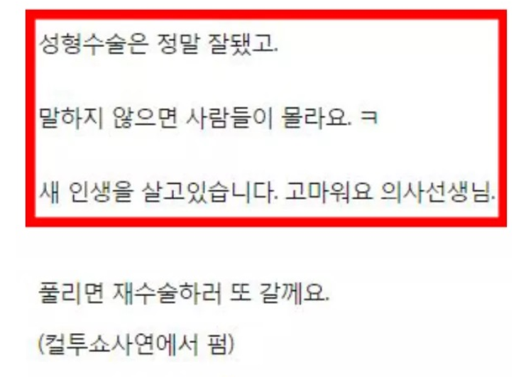 컬투쇼 레전드 사연 – 쌍꺼풀 수술 후기 ADVERTISEMENT 온라인 커뮤니티 정말 아무말 대잔치ㅋㅋㅋㅋㅋㅋㅋㅋㅋㅋㅋ 수술이 잘 됐다니 나름 해피엔딩…? ADVERTISEMENT