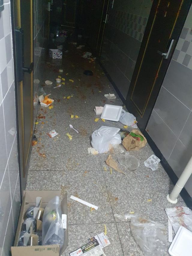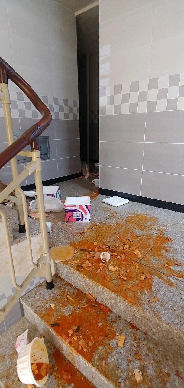 충남 천안에서 한 여성이 원룸 건물에 음식물 테러를 했다.