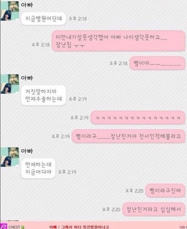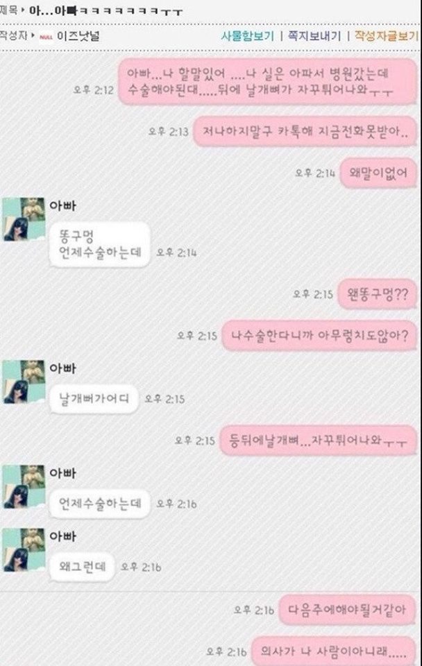 딸은 ‘ㅋㅋㅋㅋ’과 장난스러운 이모티콘을 쓰며 ‘농담’이었음 표현했지만 아버지는 이를 이해하지 못하셨다.