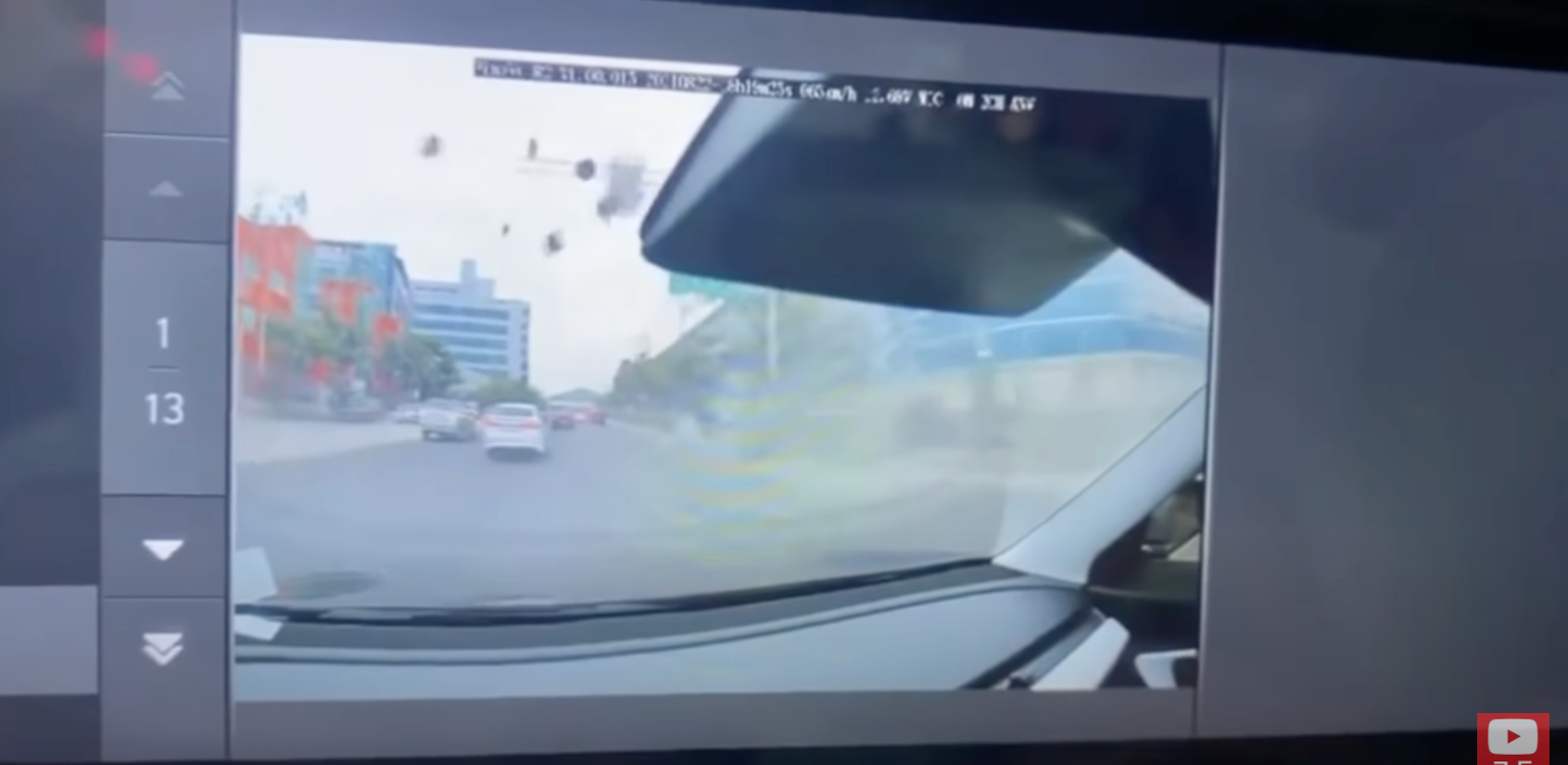 추월 이후 사고 차량은 방향과 속도를 주체할 수 없는 듯 휘청거리다 신호등을 들이 받았고 신호등은 그대로 산산이 조각이 난 상태로 도로에 떨어졌다.