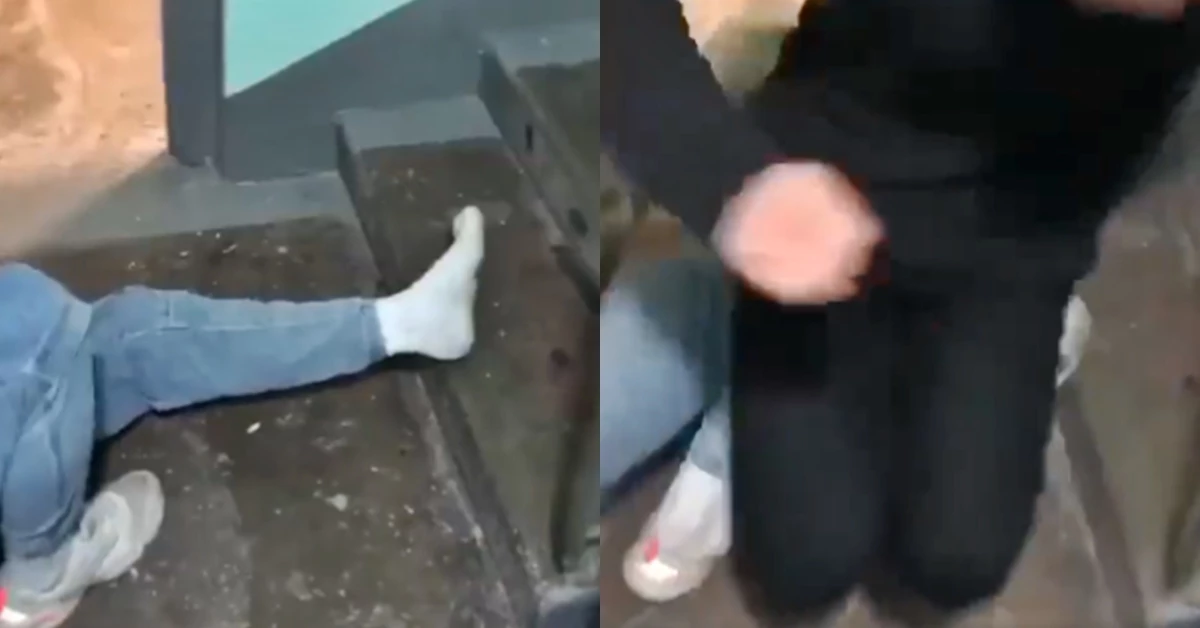 영상 속 청년은 친구에게 계단에서 뛰어내려 자기 다리를 세게 밟아달라고 요청했다.