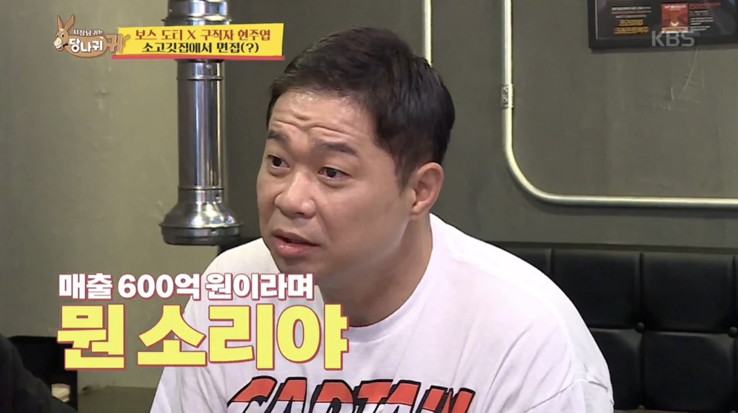 이에 현주엽은 말하고 있는 도티에게 “주문은 안하시나요?”라고 말을 끊자 도티는 “등심, 안심 섞어서 2인분이면 될까요”라고 물었고 현주엽은 “회사 매출이 600억이라 하지 않았냐”라고 반문했다.