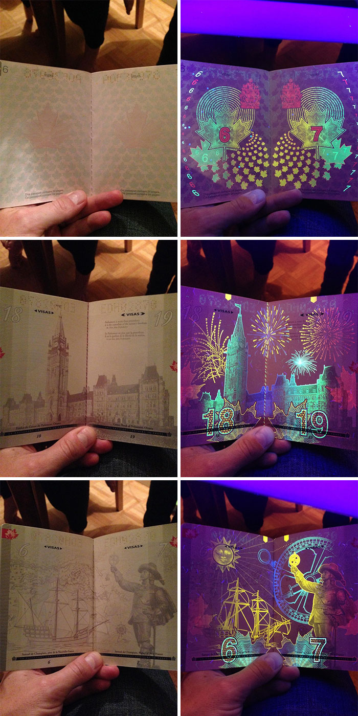 #4 캐나다 여권에 UV 빛을 쏘면 이렇게 됩니다.