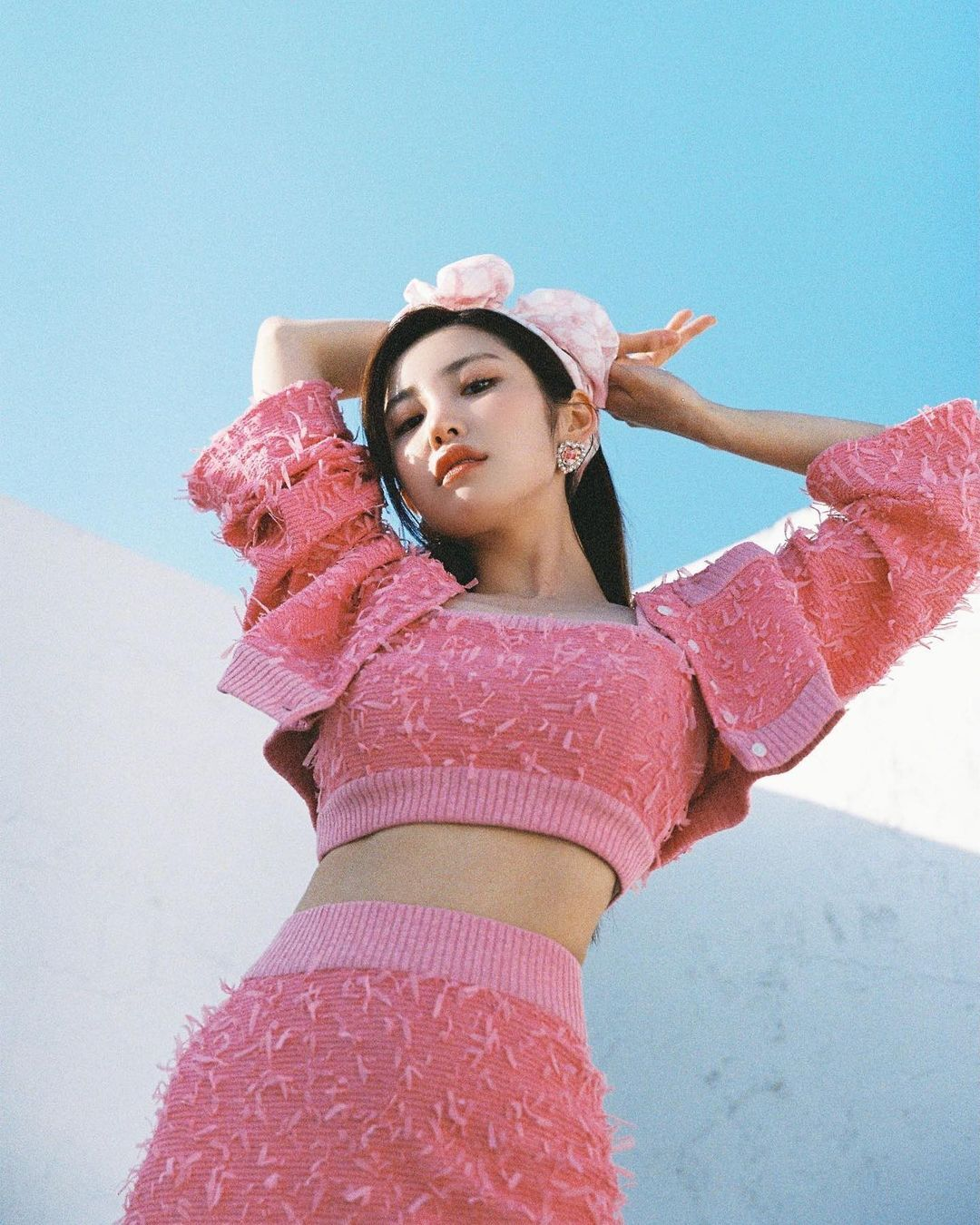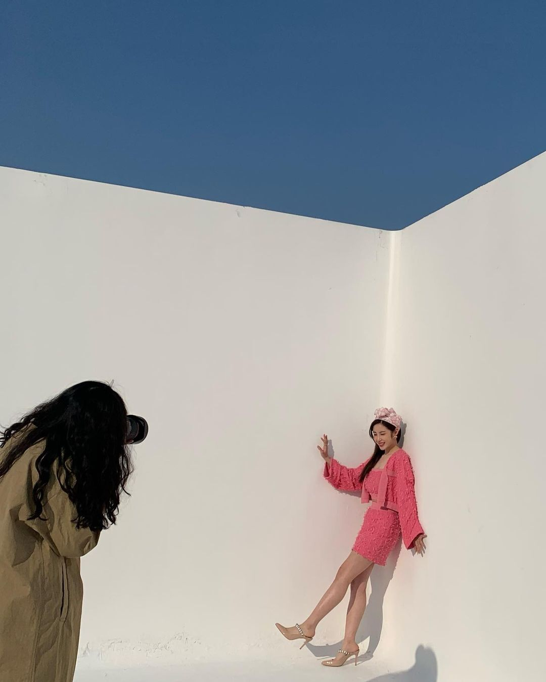 공개된 사진에는 화보 촬영 중인 듯 분홍 계열의 의상을 입고 포즈를 취하고 있는 전효성의 모습을 확인할 수 있다.