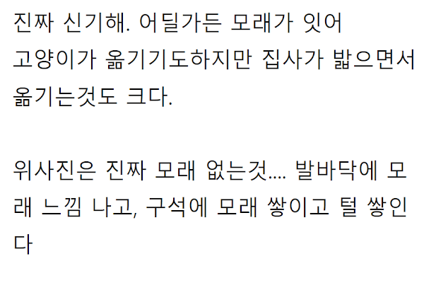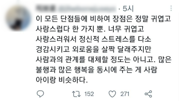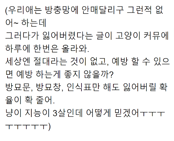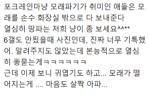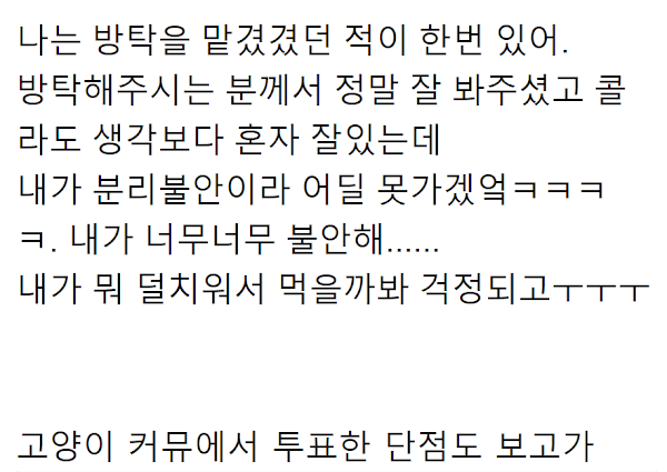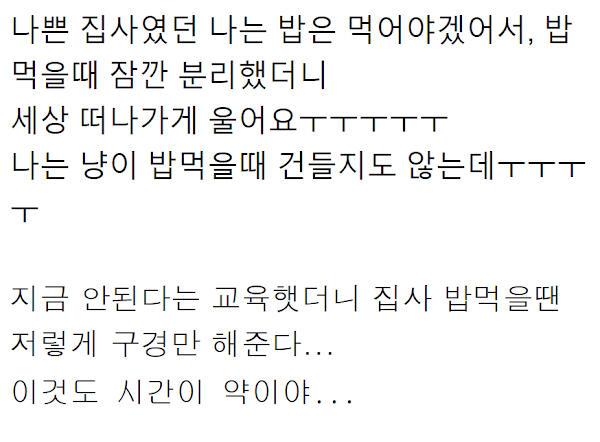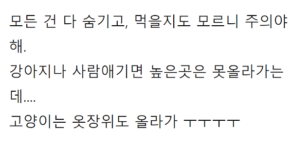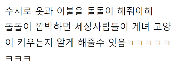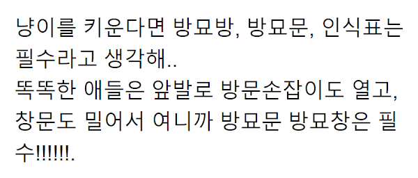 하지만 사람들의 생각과는 달리 고양이는 예민한 동물임과 동시에 사람의 품을 그리워하고 외로움을 강아지보다 더 많이 타는 반려동물이다.