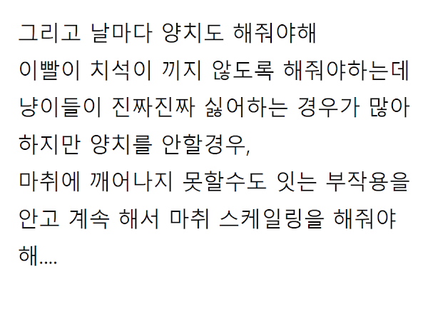 넷째, 고양이는 양치질을 필수적으로 잘 시켜줘야 한다.