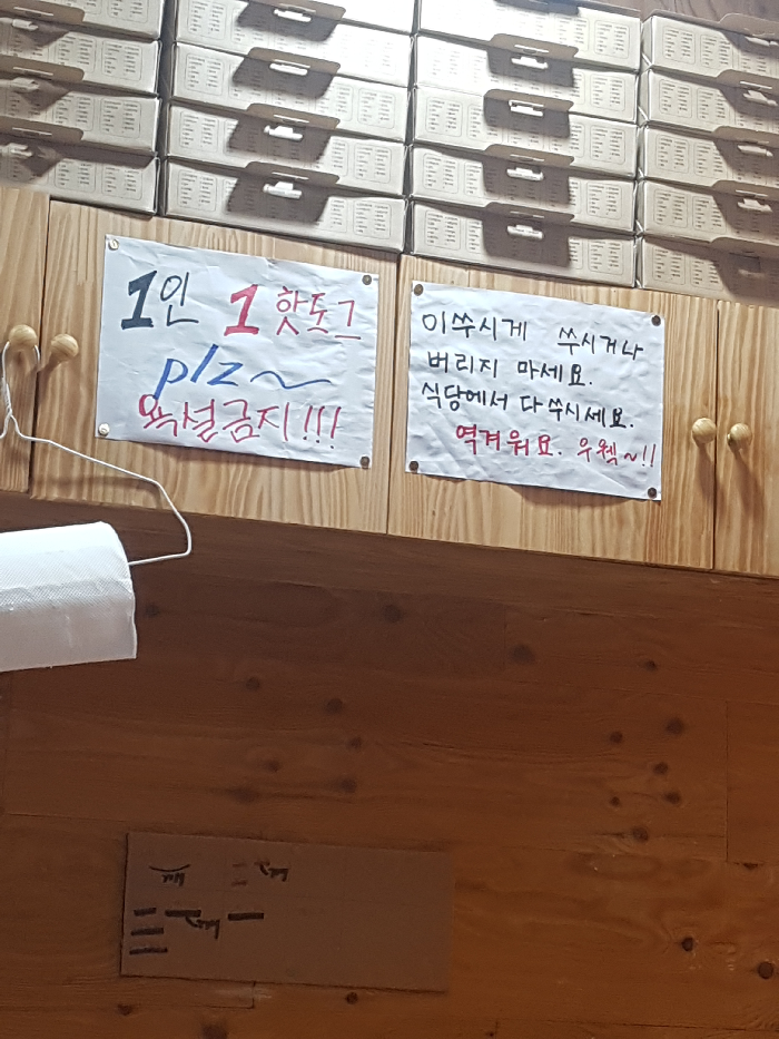가게에 핫도그를 주문하러 와 대놓고 이쑤시개를 사용하거나 쓰레기를 버리고 가는 손님들에게 당부한 것으로 보인다.