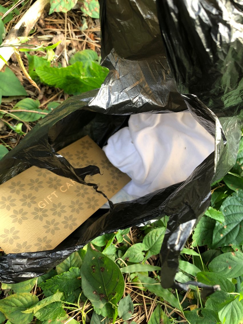 게시글 작성자 A씨가 공개한 사진 속에는 검은 비닐 봉지 안에 백화점 종이 봉투와 쌀, 런닝셔츠가 들어있는 모습을 확인할 수 있다.