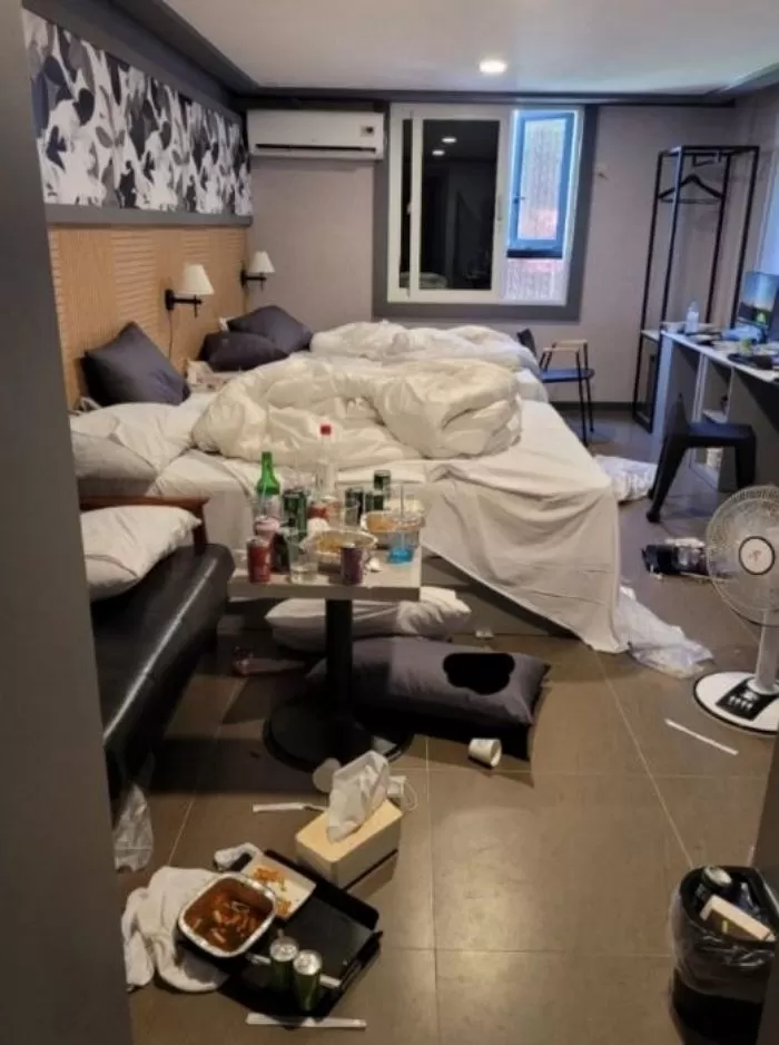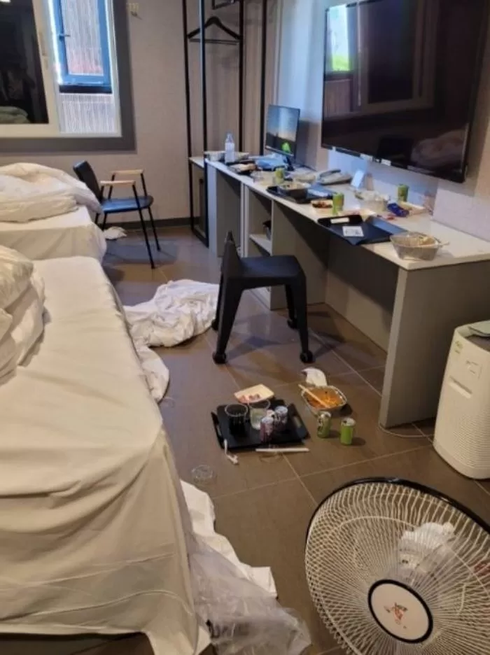 객실을 난장판으로 만들어둔 채 퇴실하는 경우가 많은데, 이 때문에 알바생들이 곤혹을 겪고 있다.