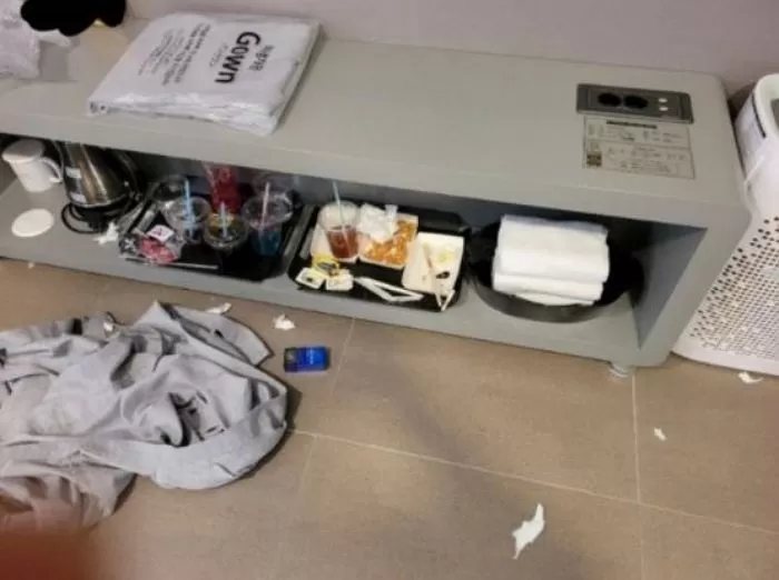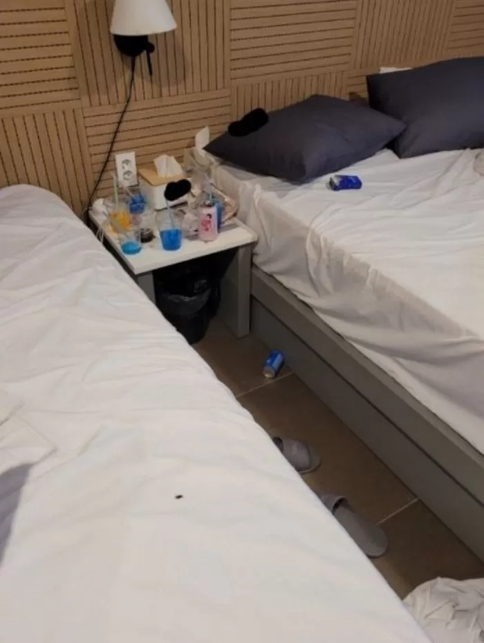 공개된 사진에는 이용객들이 퇴실하고 난 객실의 사진이 올라왔는데, 바닥과 테이블에는 먹다 남은 음식과 술병이 빼곡하게 있었다.