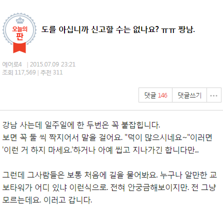 ‘도를 믿으십니까?’ 대처 방법 ADVERTISEMENT ADVERTISEMENT 온라인 커뮤니티 ADVERTISEMENT +) 도를 아십니까 신고할 수는 없나요? ADVERTISEMENT ADVERTISEMENT ADVERTISEMENT 온라인 커뮤니티