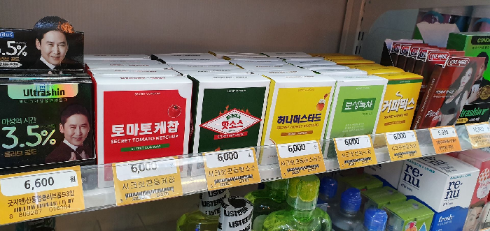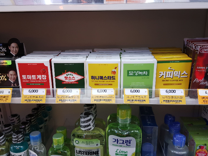 공개된 사진 속 콘,돔은 토마토 케첩과 핫소스, 허니 머스타드 소스, 녹차, 커피 믹스 아이스티, 라면 스프 등 주변에서 흔히 볼 수 있는 제품들로 구성돼 있다.