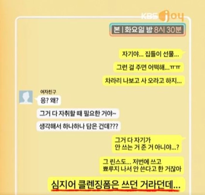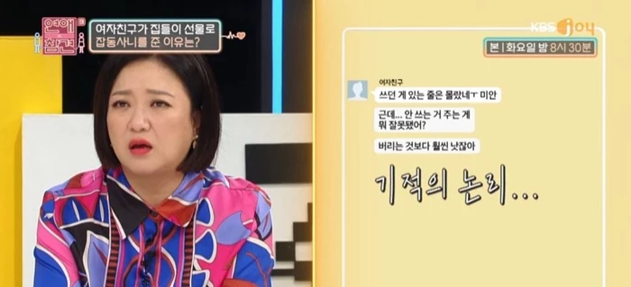 이에 고민남은 “그거 다 자기가 안 쓰는 거 준 거 아니냐?”며 “심지어 클렌징폼은 쓰던 거라던데”라고 말했다.