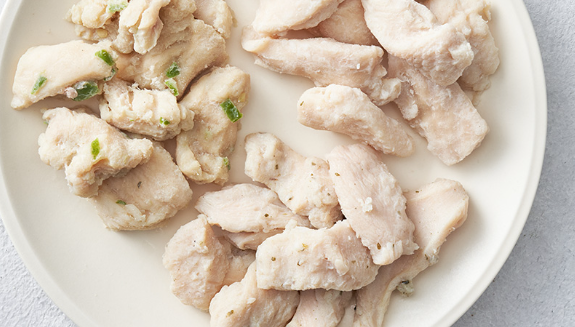 그런데 닭가슴살은 그 닭고기 중에서도 근육의 비중이 높고 기름기가 적기 때문에 맛이 다른 닭고기 부위보다도 더 담백하고 식감이 퍽퍽한데, 송아지 고기와 식감이 비슷하다.