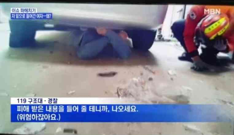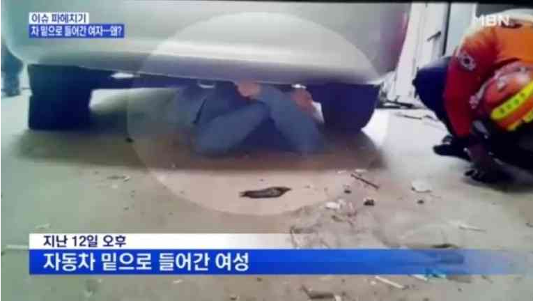 차량 밑으로 기어들어간 여자..jpg
