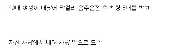 그렇게 결국 차량 3대를 충돌했고 자신차량에서 내려 차량 밑으로 도주했다.