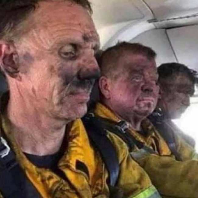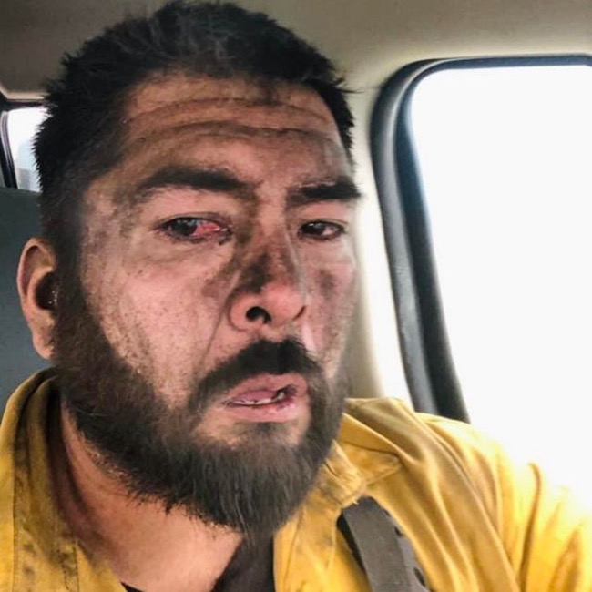 “불이 내 엉덩이를 때렸다”라고 초대형 산불이 자신을 덮친 때를 표현한 이 소방관의 얼굴은 머리와 귓속까지 모두 검게 그을리고 얼굴과 몸 전체가 온통 재로 가득한 모습이다.
