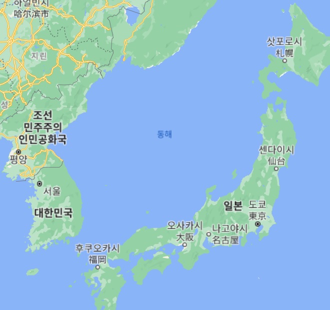 한반도 입장에서는 동쪽에 있는 바다여서 ‘동해(East Sea)’라고 부르지만, 일본 입장에서는 열도 위에 펼쳐져 있기에 ‘일본해(Sea of Japan)’라고 부른다.
