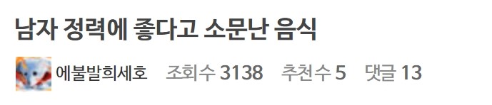 글쓴이 A씨는 “장어꼬리보다 정력에 더 좋은 음식.jpg” 라는 제목의 글로 많은 네티즌들의 궁금증을 유발 시켰다.