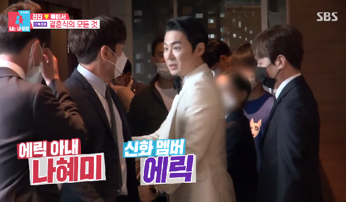 신화 멤버 에릭은 아내 나혜미와 함께 방문했다. 에릭은 결혼식 내내 아내 나혜미의 손을 잡는 등 사랑꾼 면모를 자랑했다.