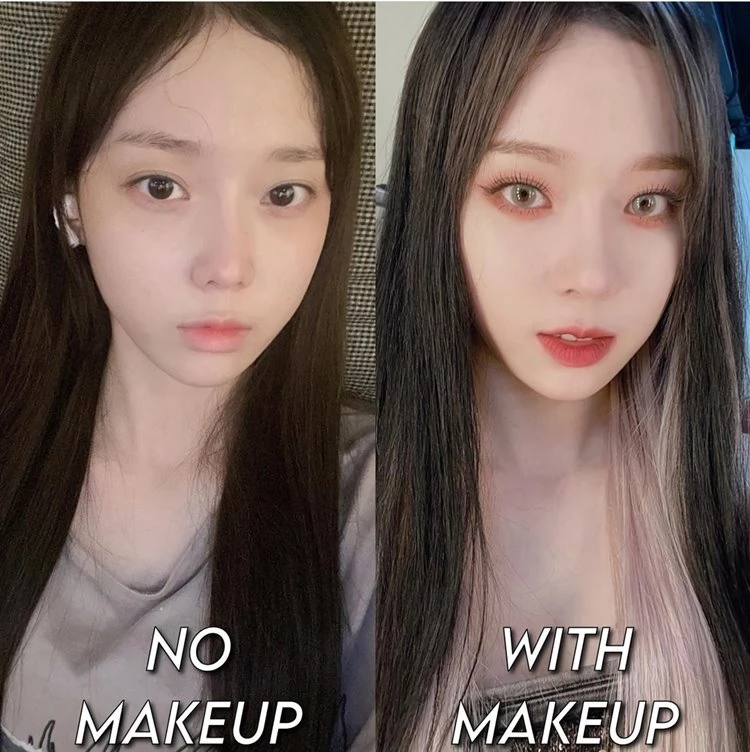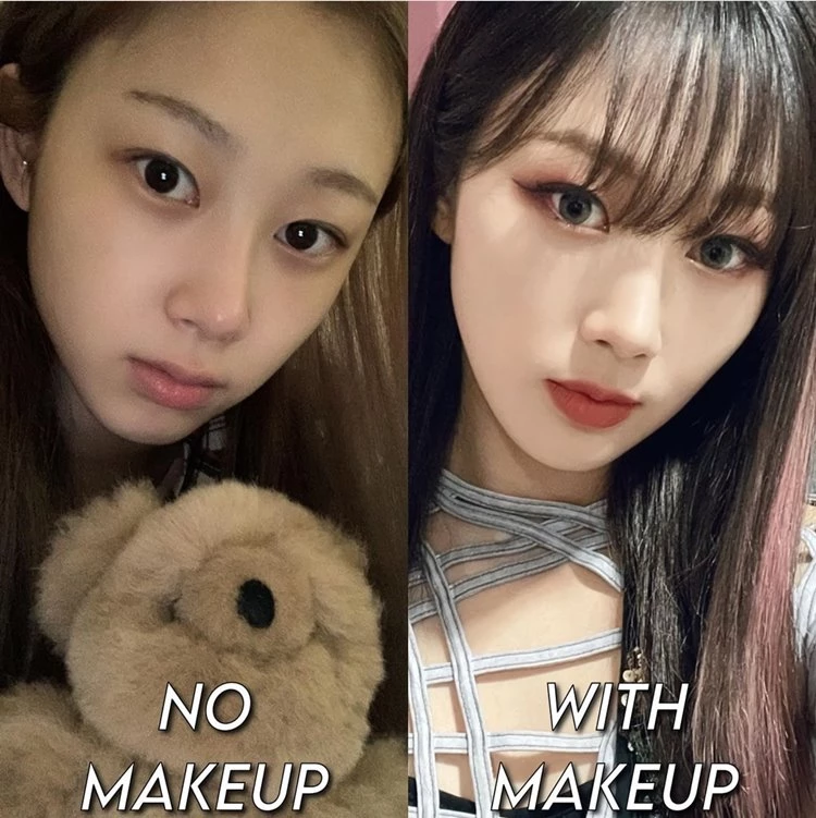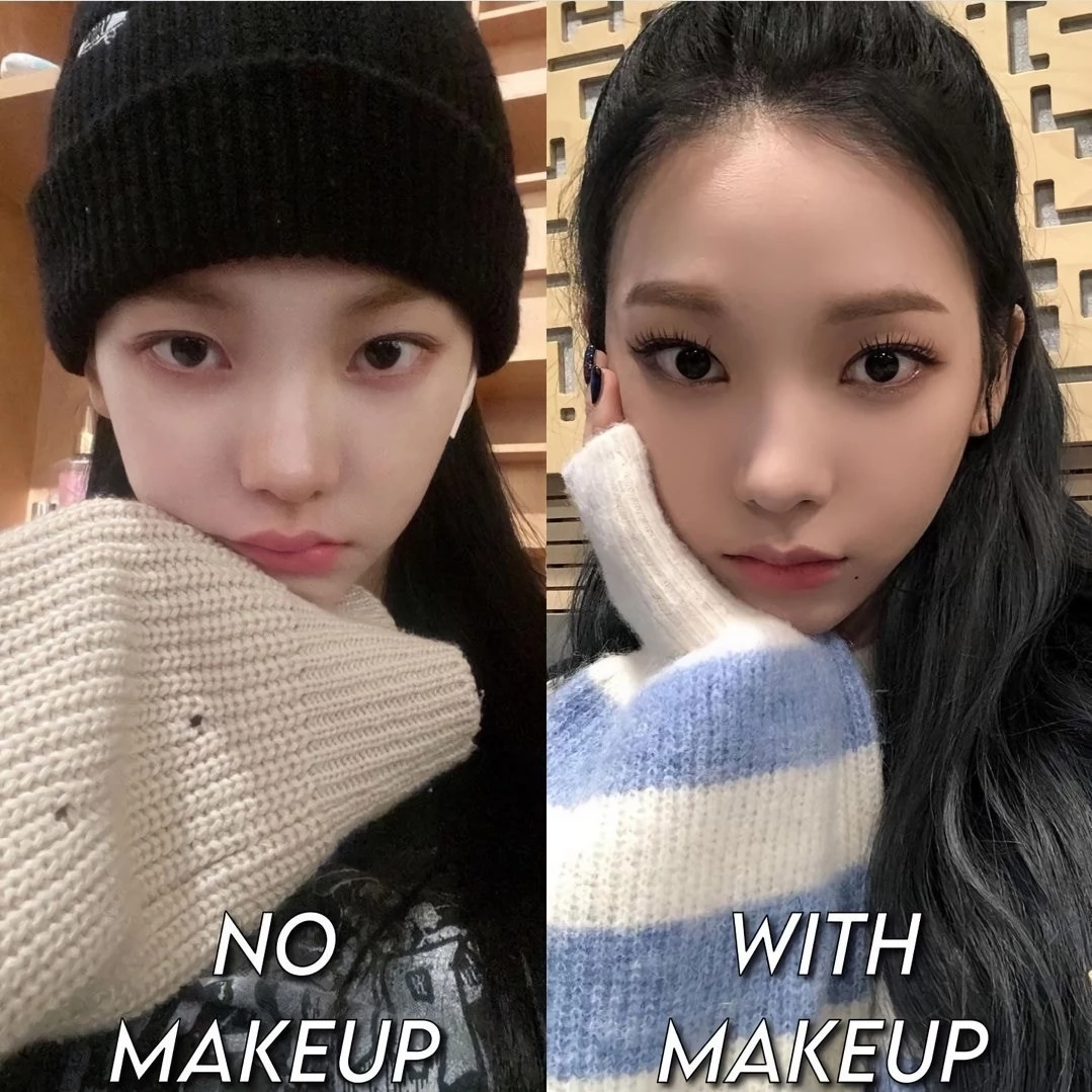 에스파의 멤버인 카리나, 윈터, 지젤, 닝닝 등이 평소 무대 메이크업을 한 사진과, 전혀 화장을 하지 않은 ‘생얼’ 사진이 비교되어 공개됐다.