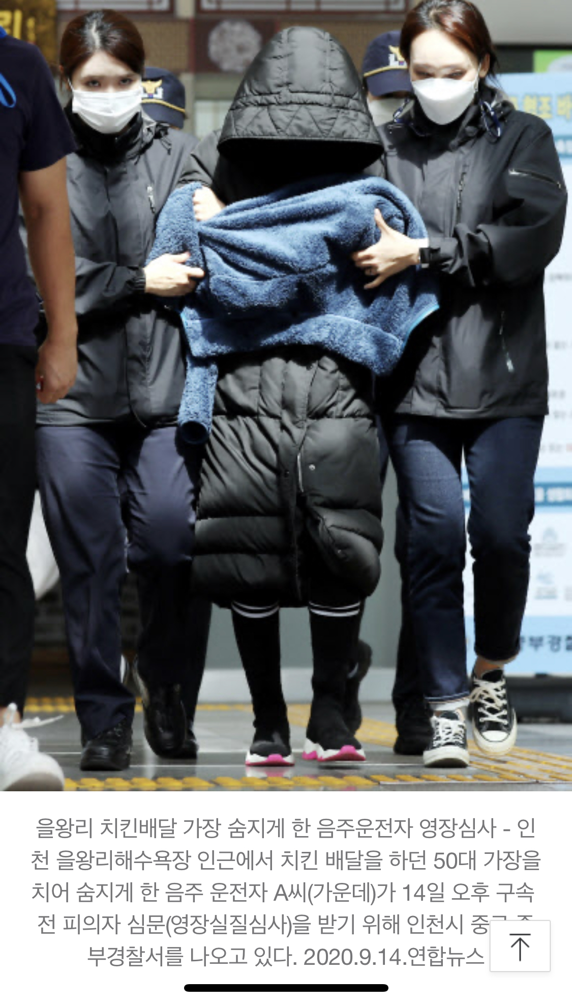 인천 을왕리해수욕장 인근에서 치킨 배달을 하던 50대 가장을 치어 숨지게한 음주 운전자가 취재진 앞에 모습을 드러냈다.