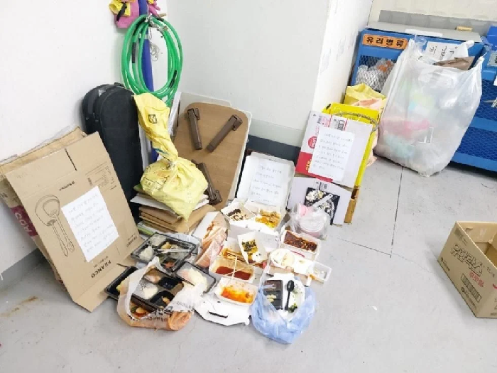 분리수거장은 음식물 쓰레기와 재활용품이 섞여 지저분한 상태였다. 한 입주자가 배달음식을 먹고 음식물을 따로 치우지 않고 그대로 버린 것.