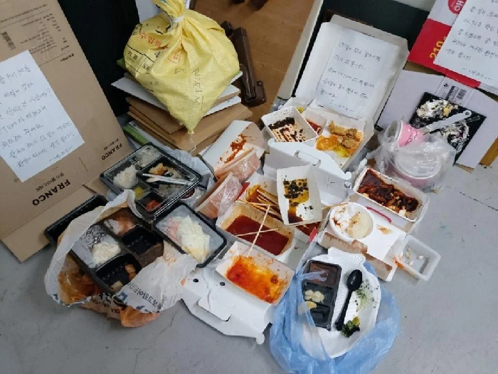 한 오피스텔 관리인이 배달 음식을 먹고 치우지 않는 여성 두 명에게 크게 분노한 사연이 전해졌다.