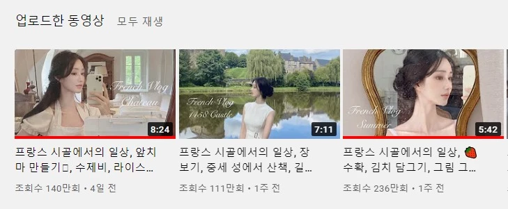 내화가 올린 영상에서는 프랑스 시골에서 생활하는 모습을 직접 브이로그 형식으로 꾸며 보여주고 있는데, 깔끔한 재료로 준비하는 식사, 바라만 봐도 힐링 되는 프랑스의 아름다운 시골 풍경, 내화의 패션과 헤어 메이크업이 모두 화제가 되고 있다.