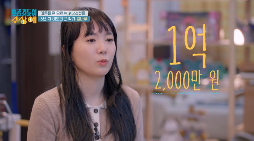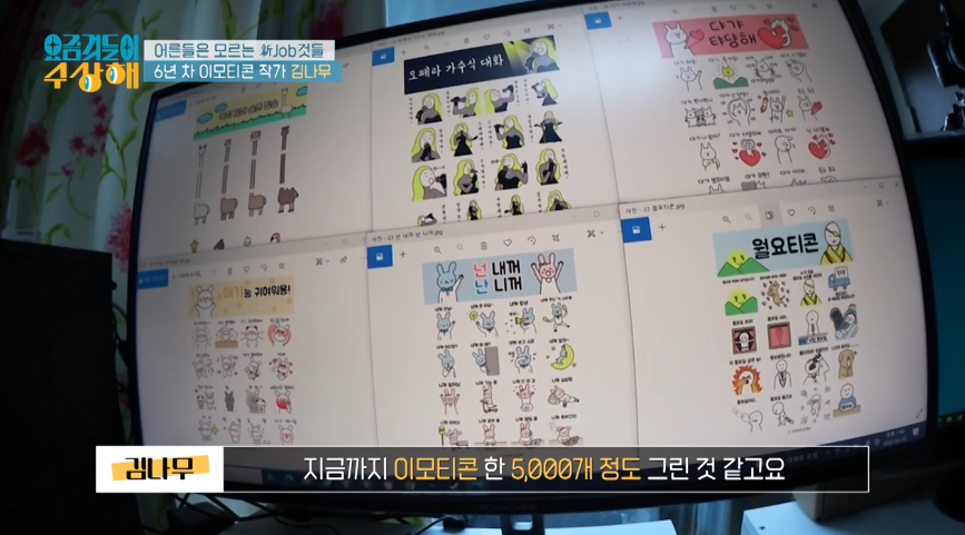 지난 1일 방송된 KBS-2TV ‘요즘것들이 수상해’에서는 6년 차 이모티콘 작가 김나무의 일상이 공개됐는데, 이날 김나무는 “방구석에서 이모티콘 만들어 억 소리 나게 돈 버는 이모티콘 작가”라고 자신을 소개했다.