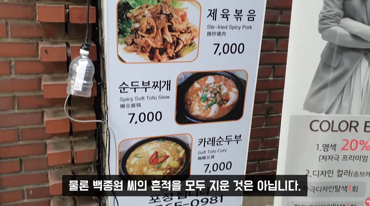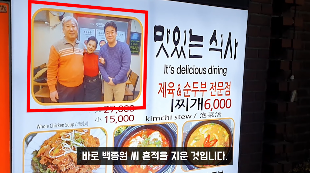 하지만 바뀐 간판에는 해당 사진 위에 새로운 메뉴 스티커를 붙이며 완전히 백종원의 흔적을 지웠다.