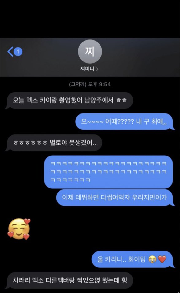 누리꾼들은 “카이는 무슨 죄냐”, “쟤도 잘못했지만 친구도 저걸 캡쳐해서 홀랑 올려버리네” 등의 반응을 보였다.