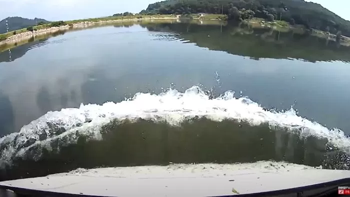 차량은 엄청난 속도로 펜스를 뚫고 그대로 앞에 있던 저수지로 달려갔다.
