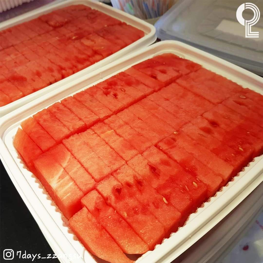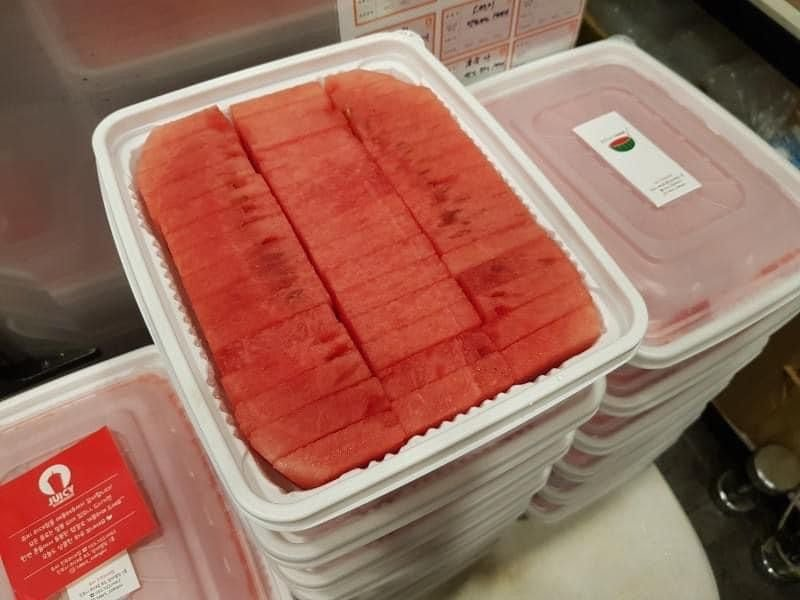 1.3㎏의 수박이 사각 도시락통에 빈틈없이 정렬되어 있다.