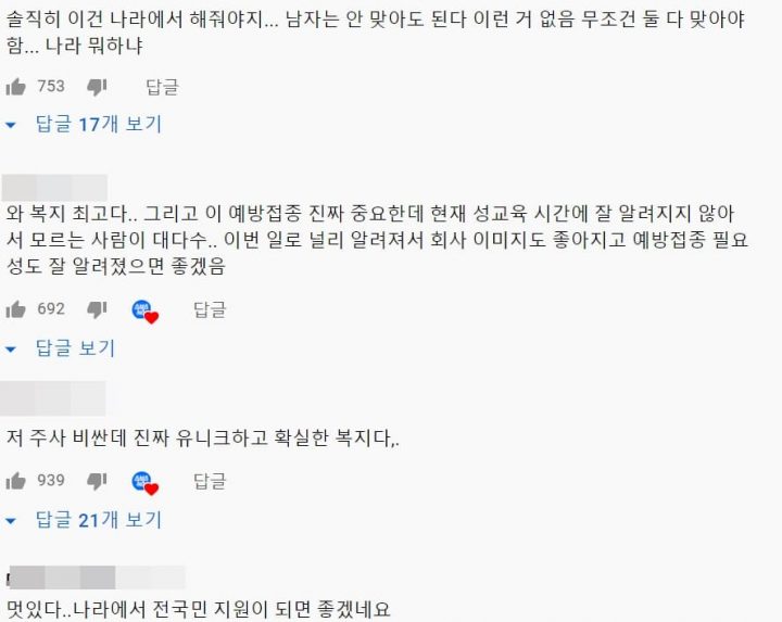 또한 감염경로가 성관계이기 때문에 여자만 맞는 것이 아닌 남자도 맞아야 하기 때문에, 이브콘돔 회사는 1년 이상 근속한 직원과 그 자녀의 경우 성별 관계 없이 HPV예방 접종을 3차까지 전액 지원하고 있다.