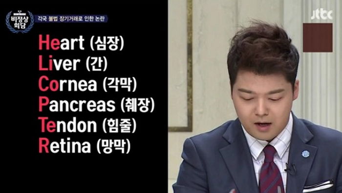 여기서 ‘귀신’은 ‘귀하의 신장’을 뜻하며, 헬리콥터(Helicopter)는 심장(HEart), 간(Liver), 각막(COrnea), 췌장(Pancreas), 힘줄(Tendon), 망막(Retina)의 합자다.