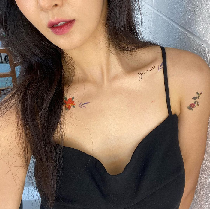 앞서 소녀시대 멤버 태연, 윤아, 유리도 비슷한 꽃 모양 타투를 새겨 눈길을 끌기도 했다.