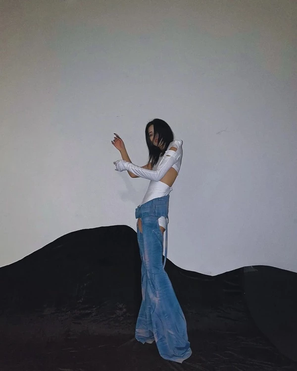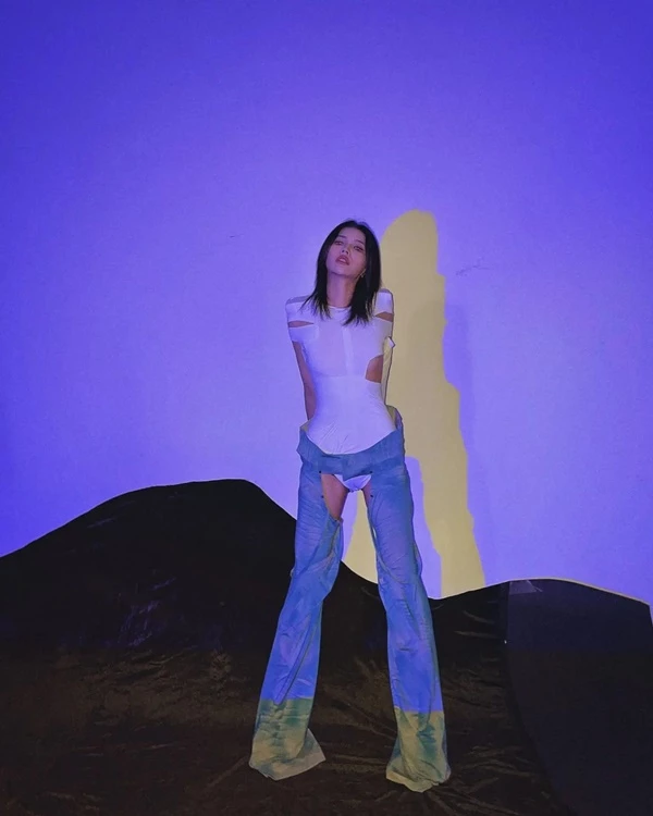 공개된 사진에는 밑.가.슴이 드러나는 ‘언더붑’ 상의를 입었으며, 청바지를 입고 포즈를 취하고 있었다.