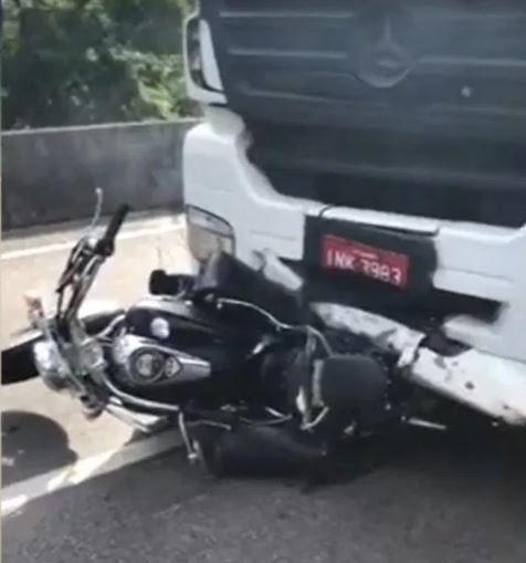 트럭 운전자는 오토바이가 아래에 깔려있었음에도 멈추지 않고 도주했다.