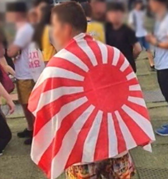 일제의 지배를 받은 한국에서는 일본군이 아시아 침략 및 제2차 세계대전 기간 중 사용한 덕분에 일본 군국주의를 상징한다고 널리 받아들여진다.