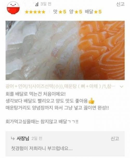 8일 한 온라인 커뮤니티엔 ‘웃긴 배달 횟집 사장님 후기’라는 제목의 글이 인기를 끌었다.