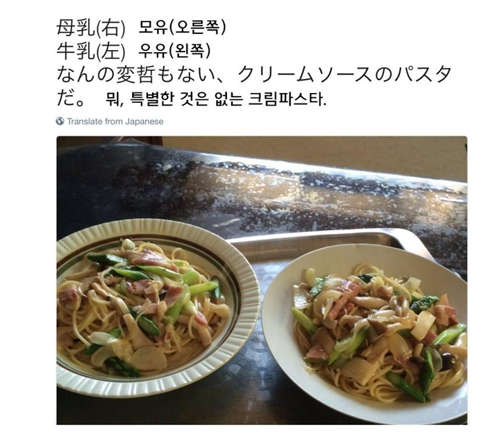 충격적인 것은 크림 파스타에 들어간 주재료가 모유라는 것.
