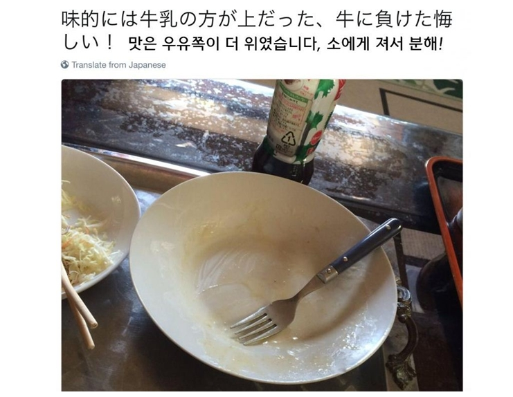 “맛은 우유 쪽이 더 위였습니다, 소에게 져서 분해!”